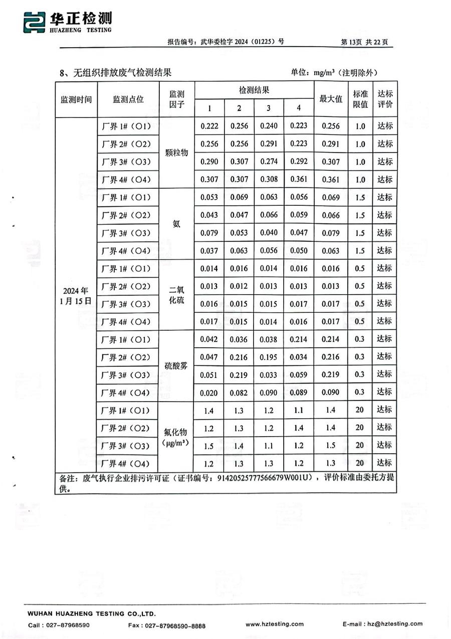 西部化工第一季度檢測(cè)報(bào)告