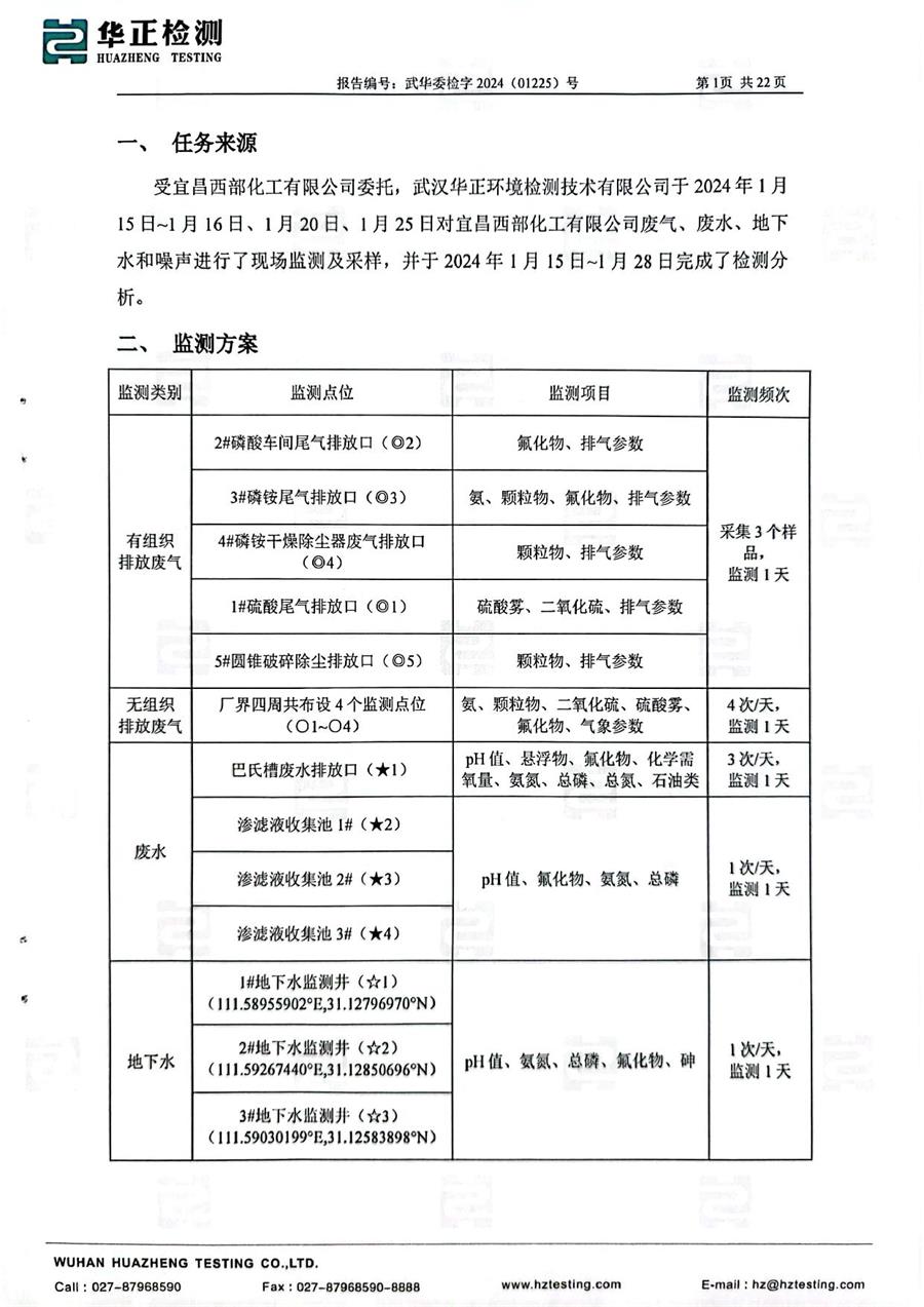 宜昌西部化工有限公司自行監(jiān)測(cè)方案
