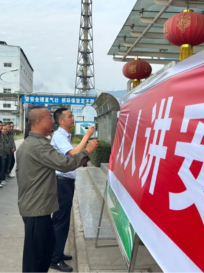 儀式上,公司董事長鄭旭東、總經(jīng)理周永龍帶領(lǐng)大家在“人人講安全、個個會應(yīng)急——暢通生命通道”的宣傳橫幅上進行了簽字宣誓。橫幅上記錄的每一個名字,都是一個個莊嚴的承諾,亦是一份份沉甸甸的責任。
